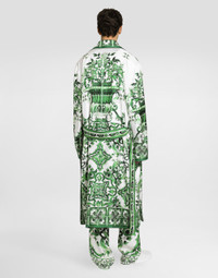 Oversize silk and yarn shirt with majolica print