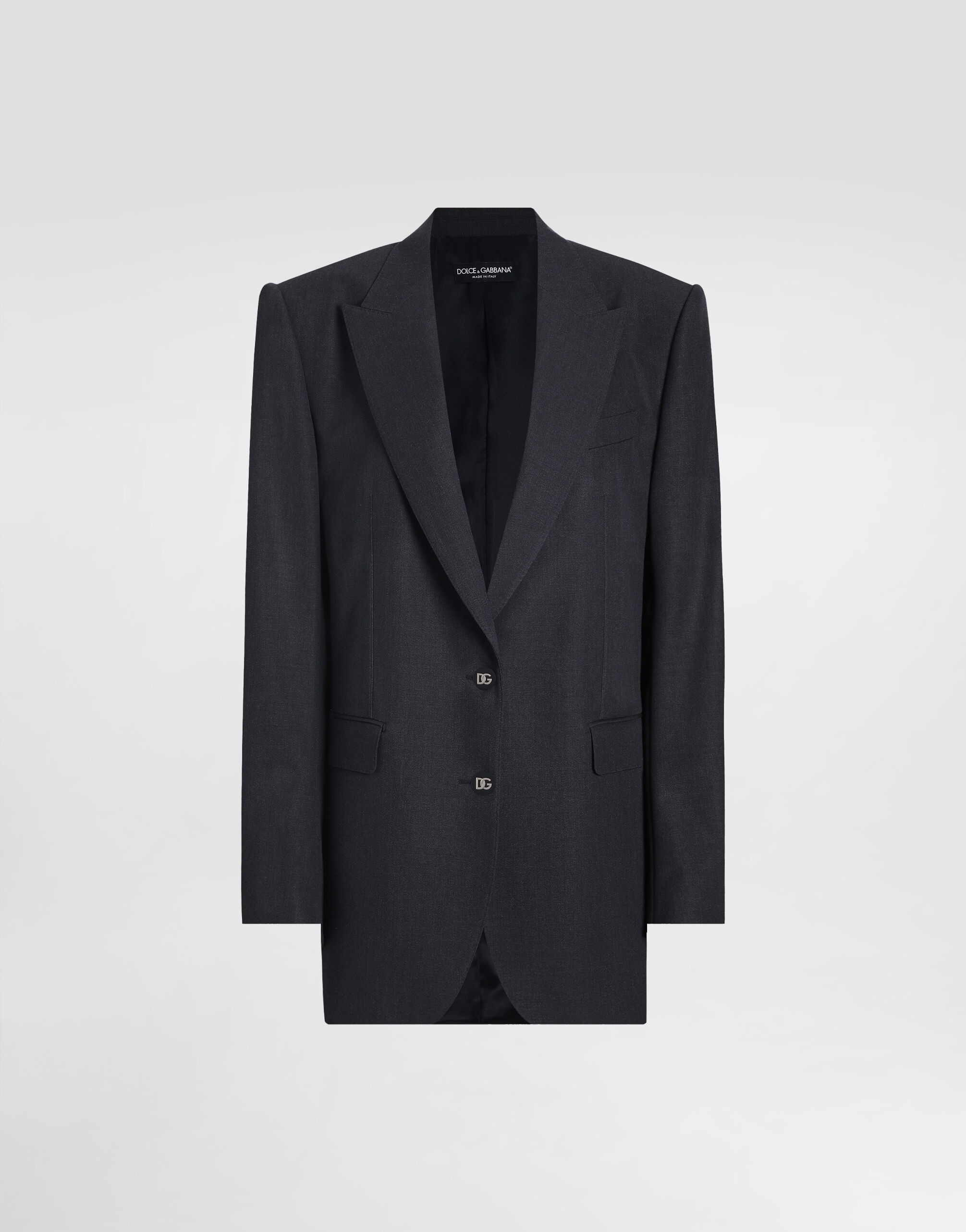 The Everyday Women's Collection reimagines contemporary daily wear with Dolce&Gabbana's signature style codes. Iconic fabrics mix with standout details like embroidered flowers, crystals, and jewel buttons, infusing elegance into every look. Gray animal print accented with green and purple, hyper-geometric jewelry, voluminous shapes and transparencies add unique touches. Men's tweed is reinvented with graphic twists, creating distinctive pieces that reflect refined sensuality. Oversize woolen jacket: • Gray • Peak lapels • Long sleeves • Welt pockets with flaps • Silk satin lining • DG-branded button fastenings • The piece measures 78 cm from the center back on a size IT 40 • The model is 175 cm tall and wears a size IT 40 • Made in Italy External composition: 100% Virgin Wool Internal composition: 100% Silk