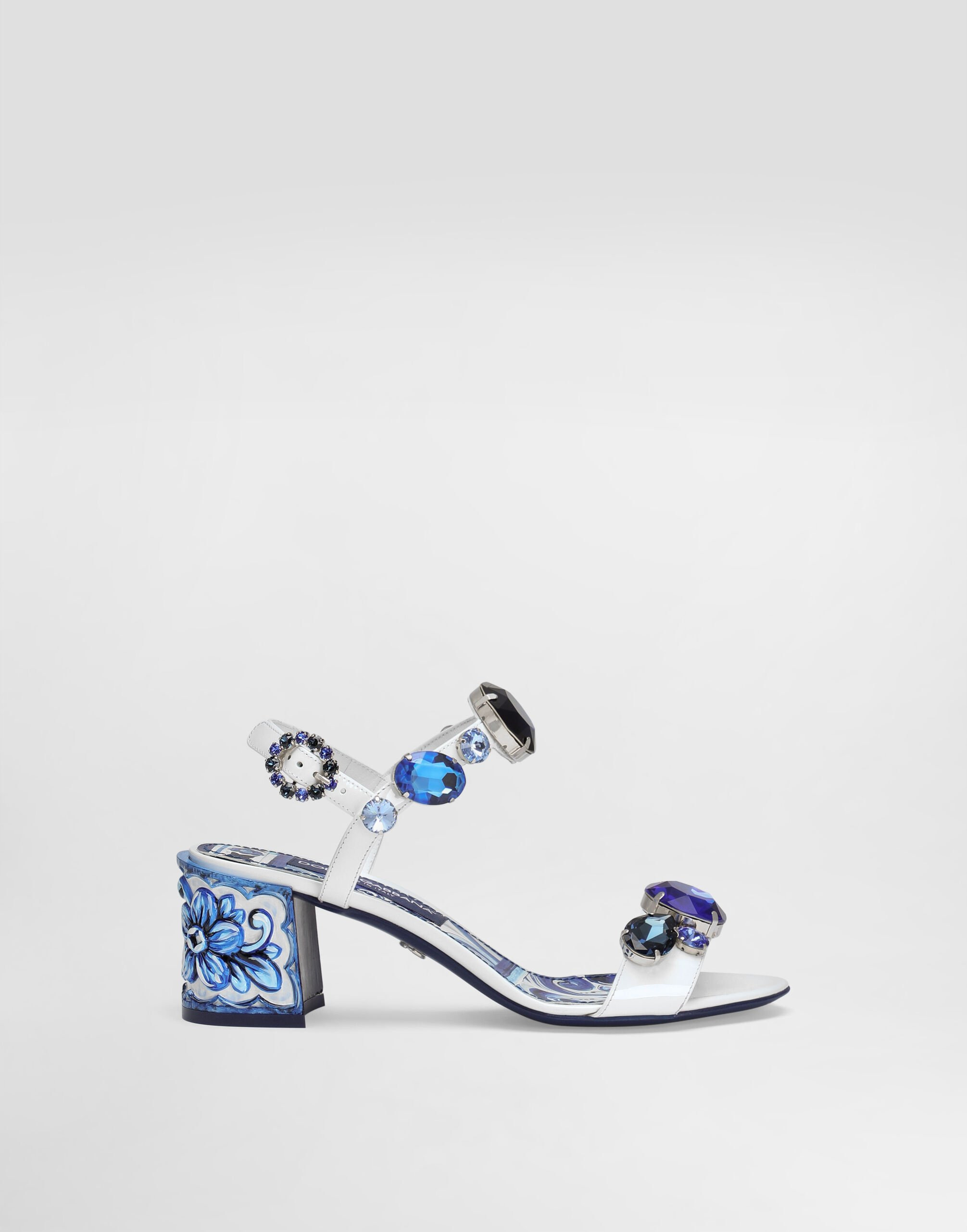 This sandal combines elegance and craftsmanship, with embroidered details that enhance the Italian tradition in a modern and sophisticated design. Patent leather sandal with jewel embroidery: • Multi-coloured • Shape Keira, Courmayeur heel • Leather sole with DG metal logo • Hand painted heel bandage • Open toe insole in printed leather with logo • Embroidery with stones and jewel buckle • Palladium electroplating • Item equipped with black cotton bag and black embossed box • Heel height 60 mm • Made in Italy External Composition: 100% Calfskin Internal Composition: 69% Goat leather, 31% Calfskin