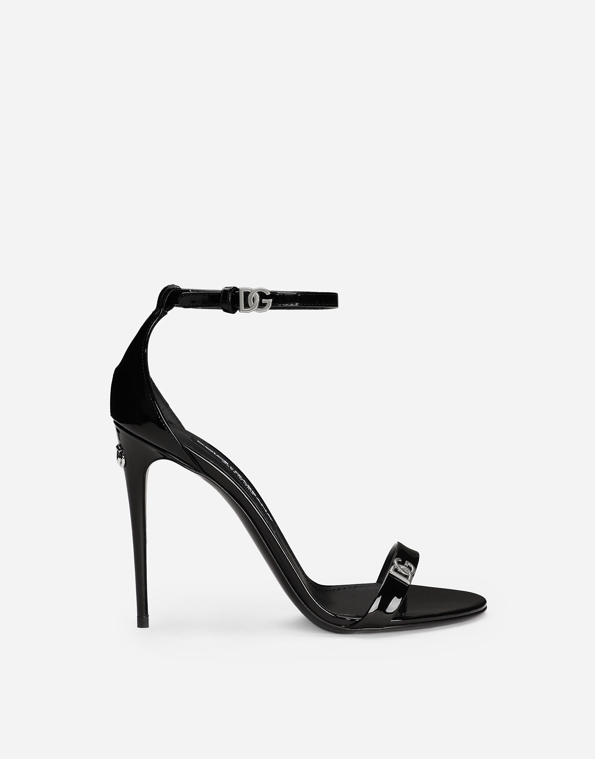 These Keira sandals come in 100% patent leather and feature the DG logo detail on the upper and heel. These Keira sandals come in 100% patent leather and feature the DG logo detail on the upper and strap. External composition: 100% Calfskin Internal composition: 100% Goatskin
