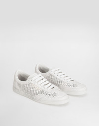 Understated and timeless, the Saint Tropez sneakers are coming in new materials. Perforated calfskin Saint Tropez Portofino sneakers featuring the Dolce&Gabbana logo: • White • Calfskin heel cup • Flat laces • Calfskin footbed with branded label • Branded rubber sole and bottom assembly • Item comes with a branded dust bag • Made in Italy External composition: 60% Calfskin 40% Lambskin Internal composition: 100% Goatskin