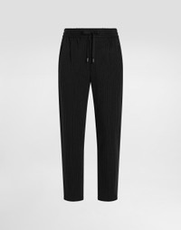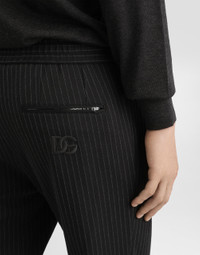 Pinstripe stretch jersey jogging pants with the DG logo-embroidered patch: • Regular fit • Stretch drawstring waist with branded metal aglets • Front and back welt pockets with zipper • The item measures 99 cm on the outer leg and the hem is 17.5 cm wide on a size IT 48 • The model is 185 cm tall and wears a size IT 48 • Made in Italy Care And Details External composition: 47% Viscose 31% Polyamide 16% Polyester 6% Spandex