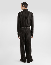 The scene is set for Dolce&Gabbana's distinctive and iconic aesthetic codes in the Collection from Men's Fall/Winter 2025 Fashion Show. The evening lights up with radiant brooches and is enriched with classic suits and blazers of timeless elegance. This formal shirt is perfect for those looking for a tailored and refined piece that is ideal for elegant occasions. Pinstriped flannel shirt: • Multi-colored • Gold shape • Long sleeves • Beveled cuff with buttonholes • The model is 185 cm tall and wears a size 48 IT • Made in Italy External Composition: 58% Alpaca, 27% Wool, 15% Polyamide