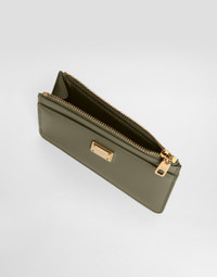 Stylish and functional, this card holder is the perfect accessory to organize your cards in style. Plonge Calfskin card holder: • Green • Zip closure • Vintage brass plating • External customization with monogalvanic plate • Internal customization with logoed flag label • Item equipped with a logo bag and a logoed box • Measurements: H9 x W13.5 x D1 cm • Made in Italy External Composition: 100% Calfskin Internal Composition: 100% Viscose This product is made with leather from tanneries certified according to environmental standards.