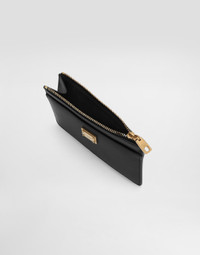 Elegant and functional, the plonge calfskin card holder is perfect for any occasion. Plonge calfskin card holder with plate: • Black • Zip closure • Vintage brass plating • External customization with monogalvanic plate • Internal customization with logoed flag label • Item equipped with logo bag and a logoed box • Measurements: H9 x W13.5 x D1 cm • Made in Italy External Composition: 100% Calfskin Internal Composition: 100% Viscose This product is made with leather from tanneries certified according to environmental standards.