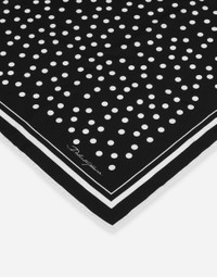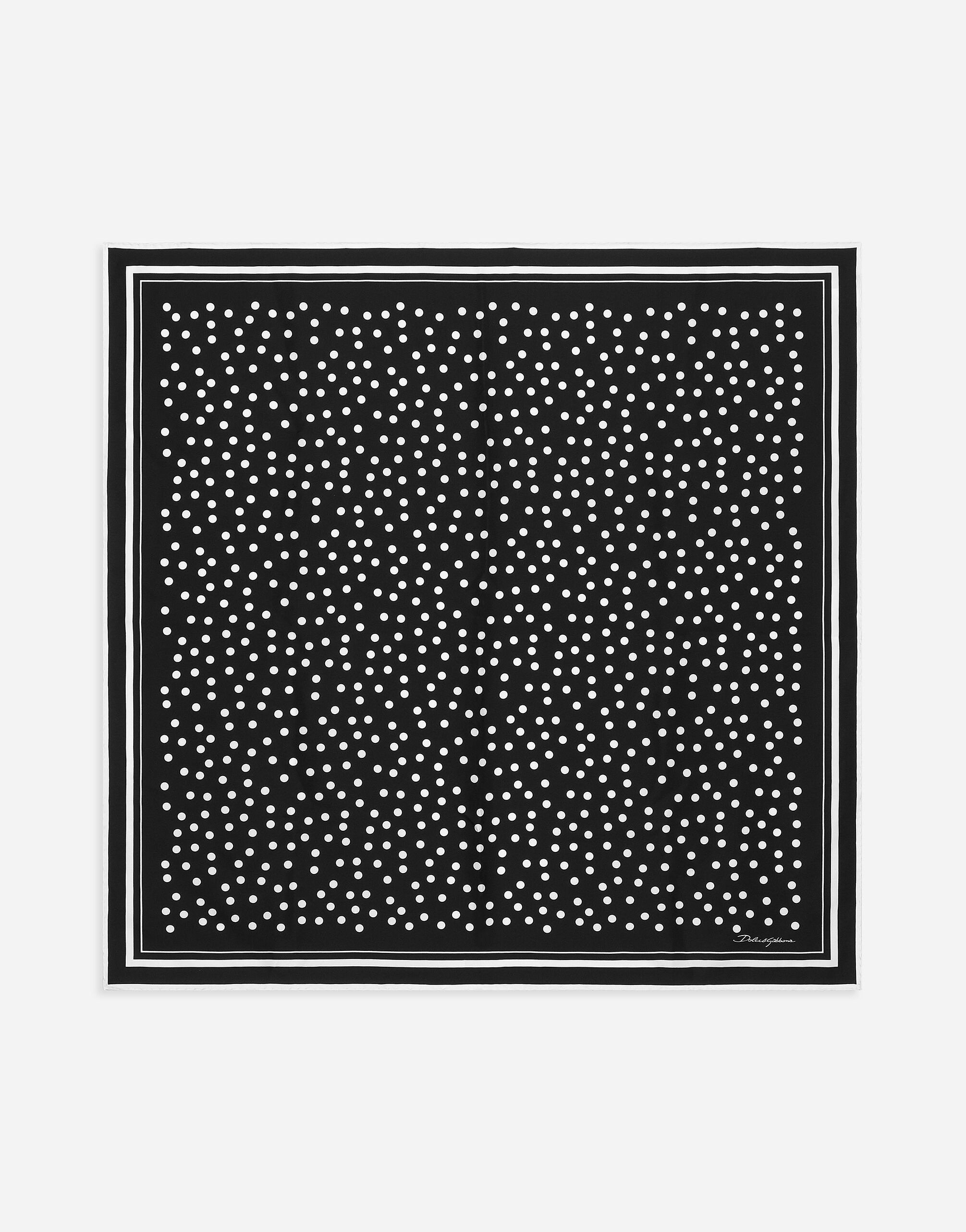In the “WOMAN SS 24” Collection, the imagery of old Sicily interacts with the masculine, with sensual shapes, lace, nude tones and delicate overlays, to create pieces that move amid clean silhouettes, the elegance of the 1960s, the contrasts of black and white and luxurious textures. The designers are reworking their signature style and their iconic Sicilia black color to convey an aware, seductive and confident Sicilian WOMAN who is imbued with sensuality. Silk twill scarf with polka-dot print: • Black • Hand-sewn hem • Dolce&Gabbana logo • Measurements: 90 x 90 cm • Made in Italy The difference in the print placement that you may find on this product is a feature of Dolce&Gabbana’s “Handmade” pieces. A detail that makes every garment or accessory unique and exclusive. External composition: 100% Silk
