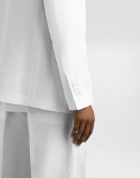 This double-breasted jacket in white linen is an elegant and versatile garment, perfect for any formal or casual chic occasion. Its linen construction ensures lightness and comfort, while the double-breasted design adds a touch of sophistication. Double-breasted linen jacket: • White • Portofino shape • Notch lapels • Double-breasted with four buttons • Unlined • The model is 185 cm tall and wears a size 48 IT • Made in Italy External Composition: 100% Linen Internal Composition: 76% Acetate, 24% Silk