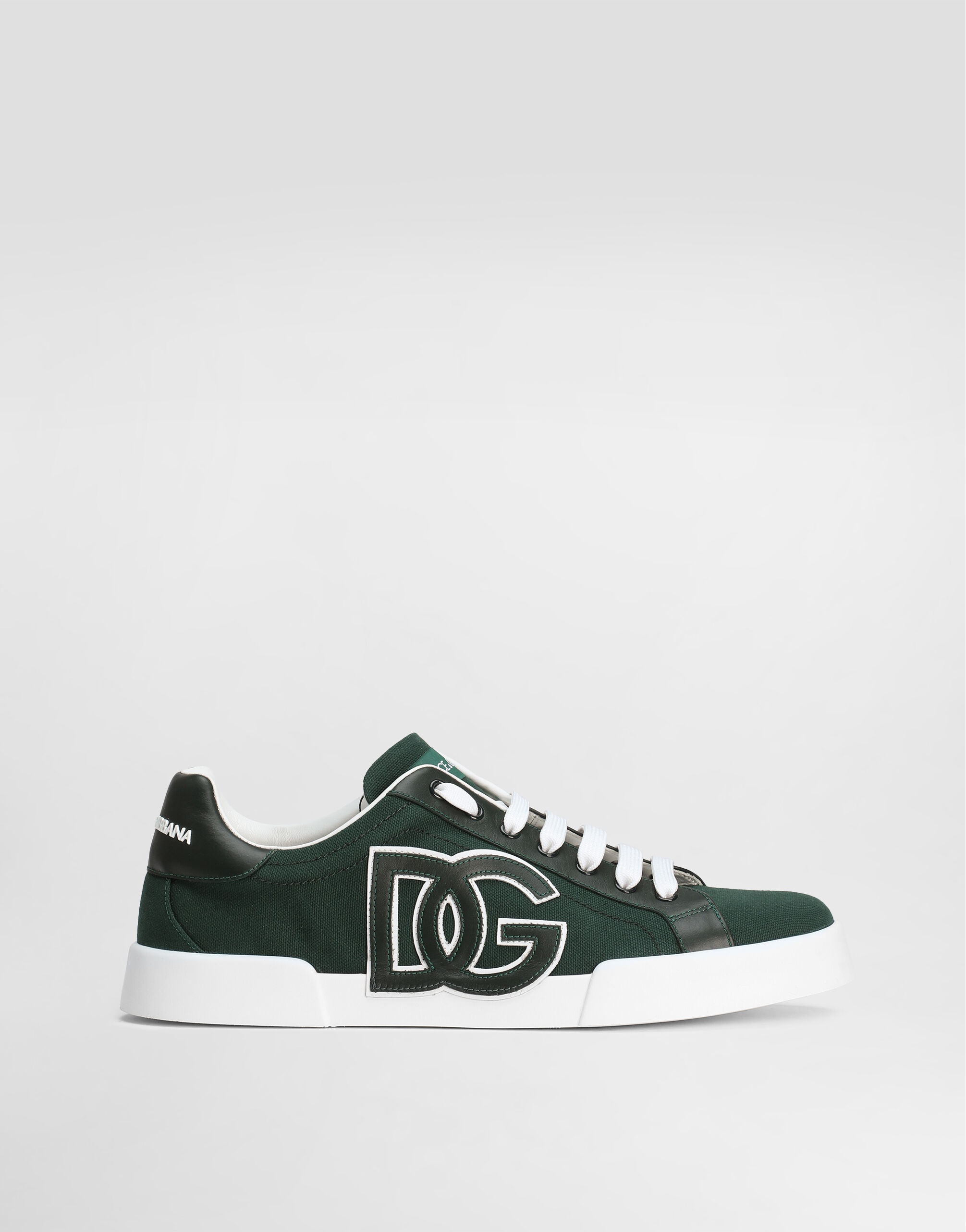 Canvas and Calfskin sneakers: • Multi-colored • Portofino Light shape • EVA outsole • Felt Insole • Polyurethane fussbett insole wrapped in leather, customized with fire stamp • DG Patch applied • Item equipped with a black cotton bag and a box made of recycled paper cellulose fiber • Sole height 15 mm • Made in Italy External Composition: 82% Cotton 18% Calfskin Internal Composition: 63% Lambskin, 16% Cotton, 16% Polyester, 5% Goatskin