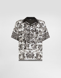 This denim shirt by Dolce&Gabbana, made with a mix of silk and cotton, represents the brand's artisanal elegance. Each piece is unique thanks to the "Handmade" workmanship, which guarantees an exclusive arrangement of the prints. Printed silk and cotton denim shirt: • Multi-coloured • Back and shoulder yoke with stitching • Book-seam seams on the sides and inside the sleeves • The model is 185 cm tall and wears a size 48 IT • Made in Italy The difference in the print placement that you may find on this product is a feature of Dolce&Gabbana’s “Handmade” pieces. A detail that makes every garment or accessory unique and exclusive. External Composition: 55% Silk, 45% Cotton