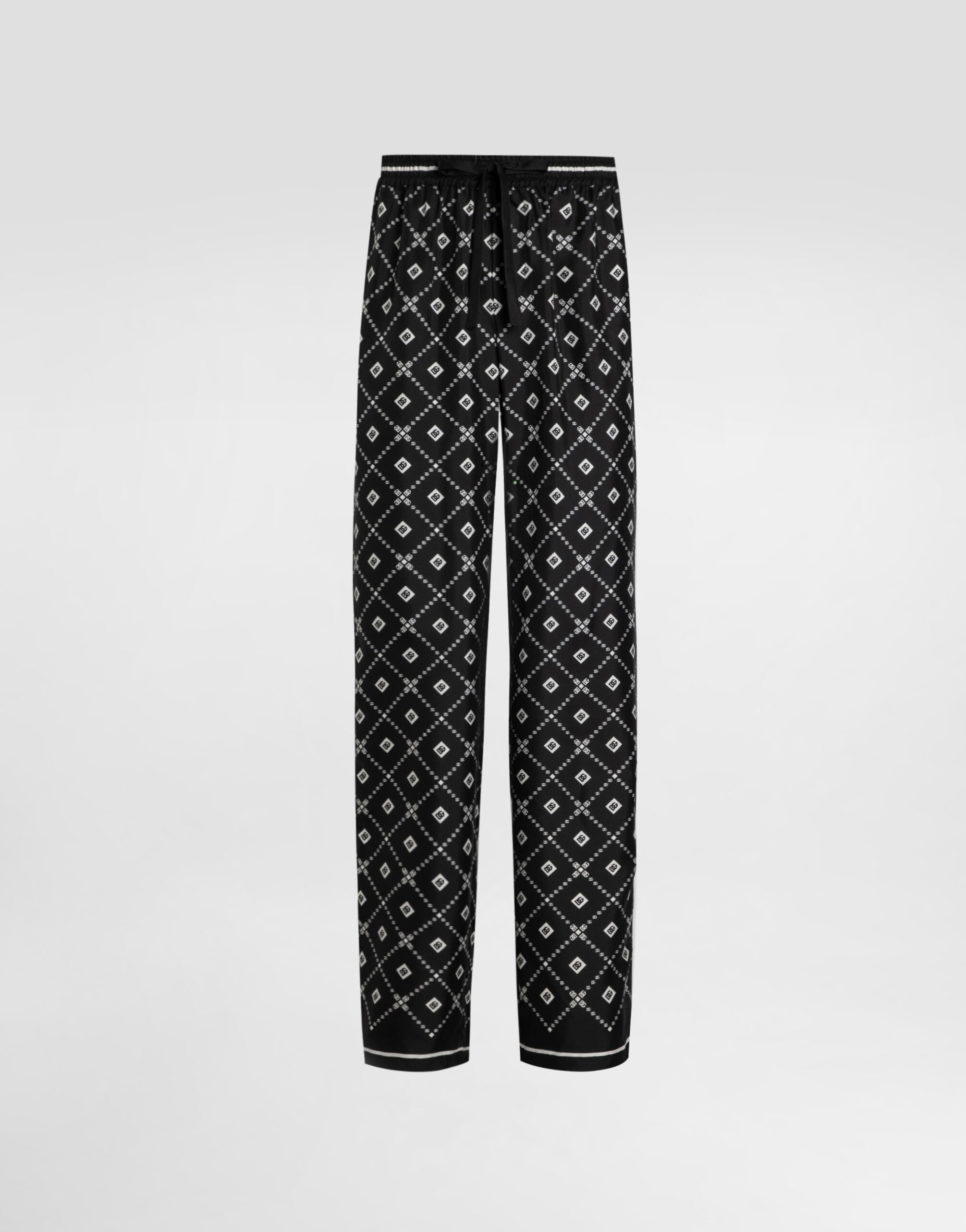 These silk twill trousers represent a modern and sophisticated interpretation of the classic men's garment, perfect for those looking for a touch of style and comfort. Printed twill trousers: • Multi-colored • Back pocket with piping • The model is 185 cm tall and wears a size 48 IT • Made in Italy The difference in the print placement that you may find on this product is a feature of Dolce&Gabbana’s “Handmade” pieces. A detail that makes every garment or accessory unique and exclusive. External Composition: 100% Silk