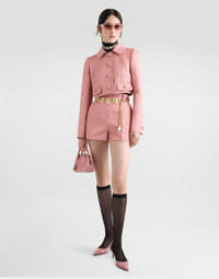 Quilted jacquard shorts with DG logo: • Pink • Regular rise • Slant pockets • Belt loops • Inner leg: 4.7 cm • Hem: 33 cm • Zipper and cannete-covered button with DG logo • The model is 175 cm tall and wears a size IT 40 • Made in Italy External composition: 44% Cotton 32% Polyester 24% Silk