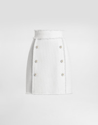 This Rachel tweed skirt is a versatile and chic piece that is perfect for adding a touch of elegance to any outfit. The sophisticated design and refined details make it a must-have for those who love refined and modern style. Rachel tweed skirt: • White • Slightly flared • Fringed hem finish • Fake lacing, zip closure • Metal zip closure up to the waistband • Lined • The model is 175 cm tall and wears size 40 IT • Made in Italy External Composition: 67% Virgin Wool, 27% Viscose, 6% Polyamide Internal Composition: 92% Silk, 8% Elastane