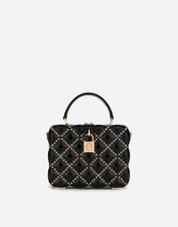 A brand icon, the Dolce Box bag embodies the brand’s craftsmanship, love and attention to detail. Fine and elegant, it comes in quilted-effect resin with multi-colored rhinestone appliqués. It features a top handle and an adjustable, detachable strap in patent leather: • Padlock fastening in light gold-plated metal with enamel flower embellishment • Top handle and adjustable, detachable strap in patent leather • Calfskin lining and inner pocket with concealed magnetic closure • Item comes with special packaging • Measurements: 14.5 x 19 x 7 cm - 5.7 x 7.5 x 2.8 inches • Made in Italy Care And Details External composition: 60% Polylactic acid 15% Brass 15% Calfskin 10% Glass Internal composition: 100% Calfskin