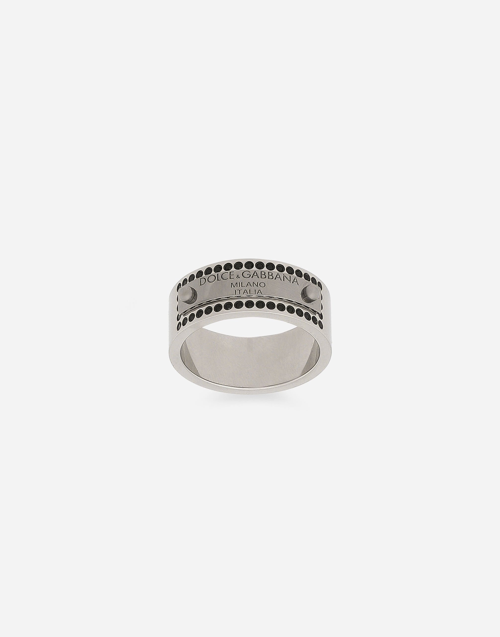 The Holiday collection is an extraordinary story that brings together two worlds: Dolce&Gabbana and the great stars from Hollywood’s Golden Age, who were recognized and admired for their wonderful dresses and extraordinarily glamorous looks. The designers are reinventing and making us dream in front of tailored pieces with breathtaking elegance and visual impact, a sparkling mood that will give everyone a modern, recognizable and unique allure on any occasion. Ring with DG logo tag: • Silver • Metal tag with engraved logo • Height: 1 cm • Black round glass crystal rhinestones • Nickel-free and hypoallergenic materials • Made in Italy External composition: 80% Brass 20% Glass