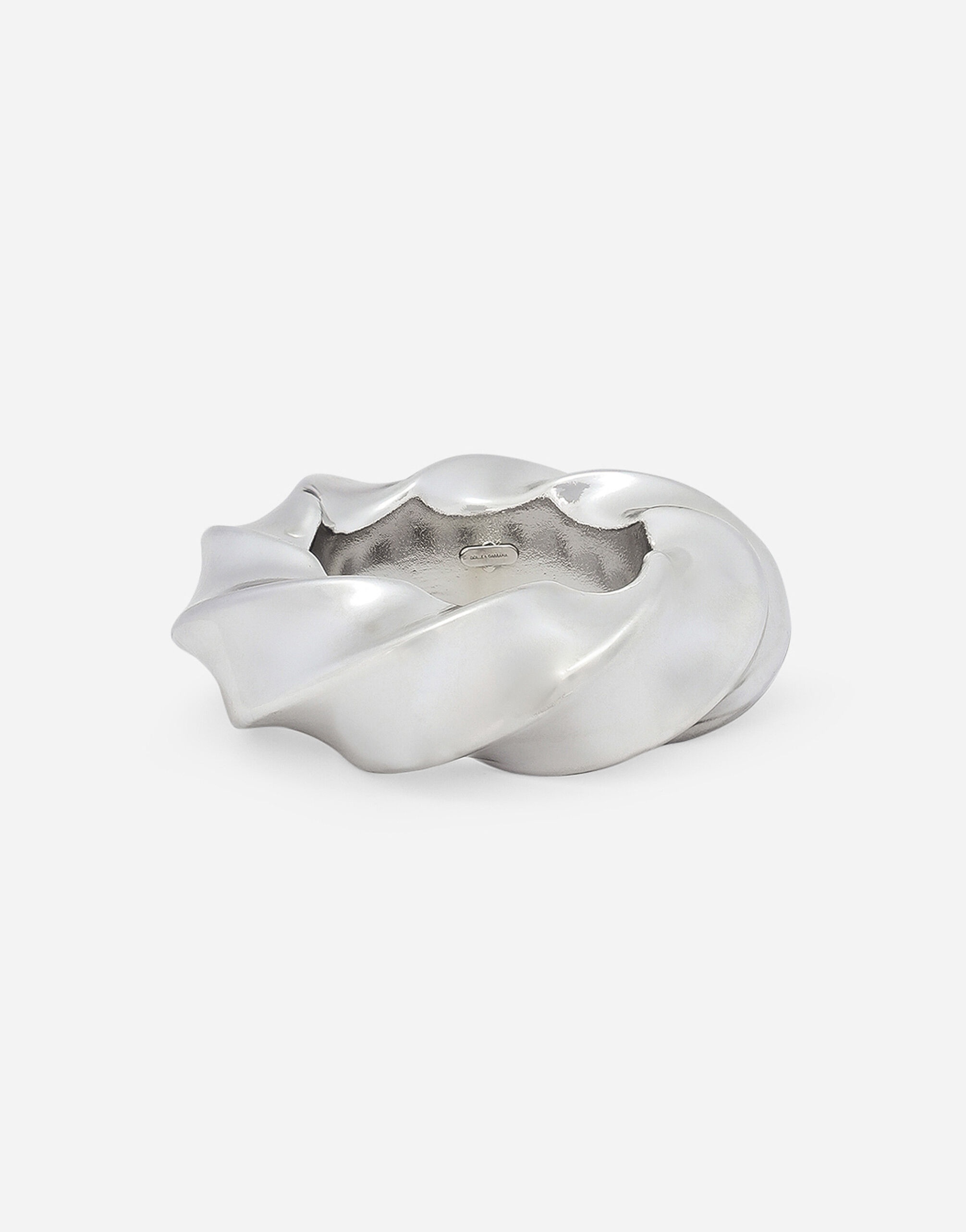 The Dolce&Gabbana Jewelry Collection is filled with unique pieces boasting great craftsmanship. Contemporary accessories with original and exclusive DG logo details, featuring different electroplated finishes, will be perfect for finishing off any look with great style. Rigid resin torchon bracelet: • Silver • Diameter: 11 cm • Nickel-free and hypoallergenic materials • Engraved logo • Made in Italy Composition: 100% Resin
