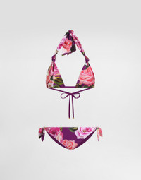Rose-print triangle bikini