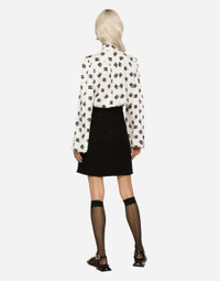 Rush-stitch skirt with side slit: • High-waisted • Stretch silk satin lining • Rear zipper and hook-and-eye fastening • The piece measures 45 cm from the waist down on a size IT 40 • The model is 175 cm tall and wears a size IT 40 • Made in Italy Care And Details External composition: 76% Cotton 28% Viscose 4% Linen 1% Polyamide Internal composition: 92% Silk 8% Spandex