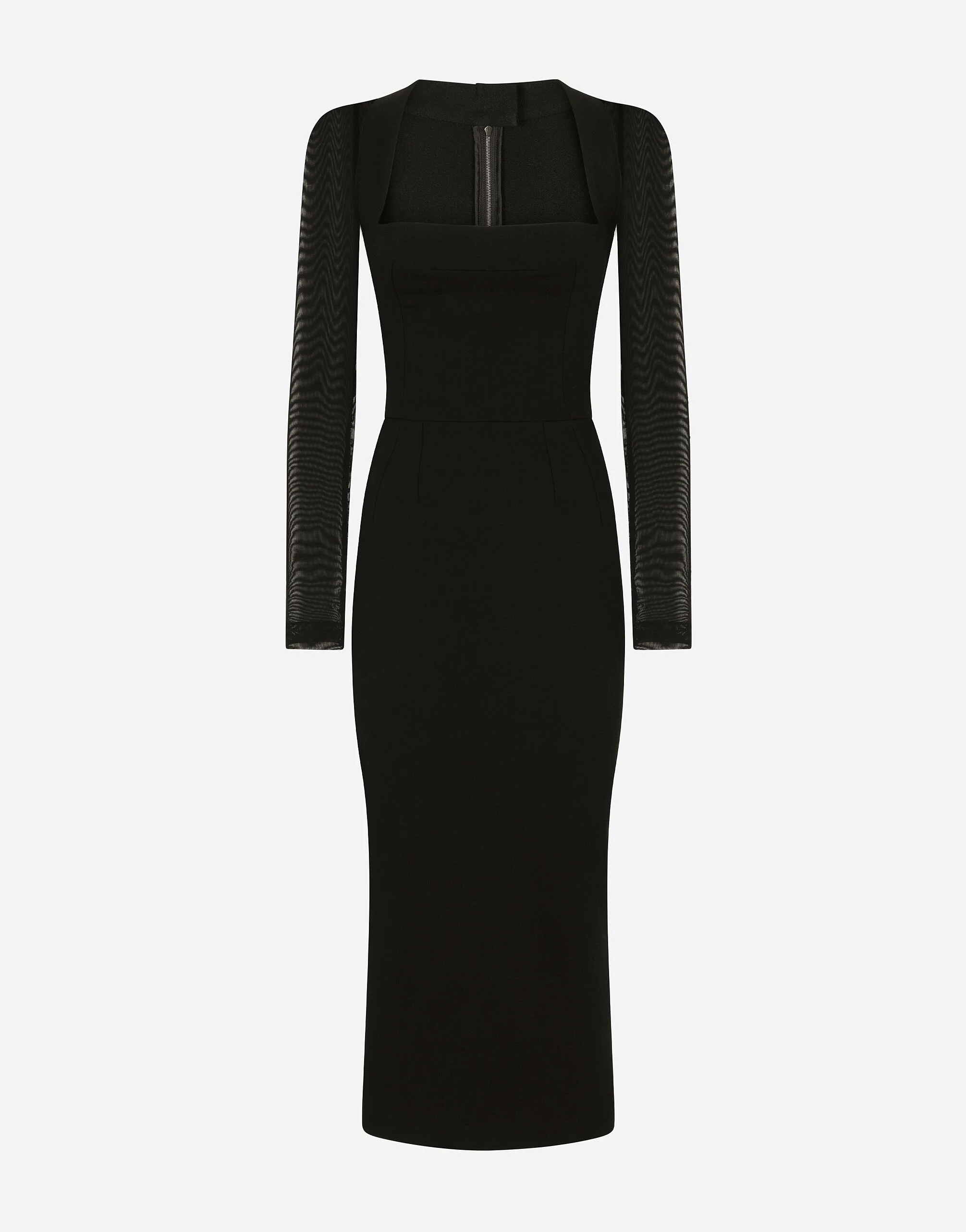 Tradition means nothing without innovation. Dolce&Gabbana took this concept as its starting point to rework this iconic sheath dress that has evolved and been reinterpreted in stretch sable with tulle sleeves, to give you modern sensuality: • Square neckline • Long sleeves • Unlined • Zipper fastening at the back • The piece measures 82 cm - 32.3 inches from the waist down on a size IT 40 • The model is 175 cm - 68.9 inches tall and wears a size IT 40 • Made in Italy Care And Details External composition: 97% Viscose 3% Spandex
