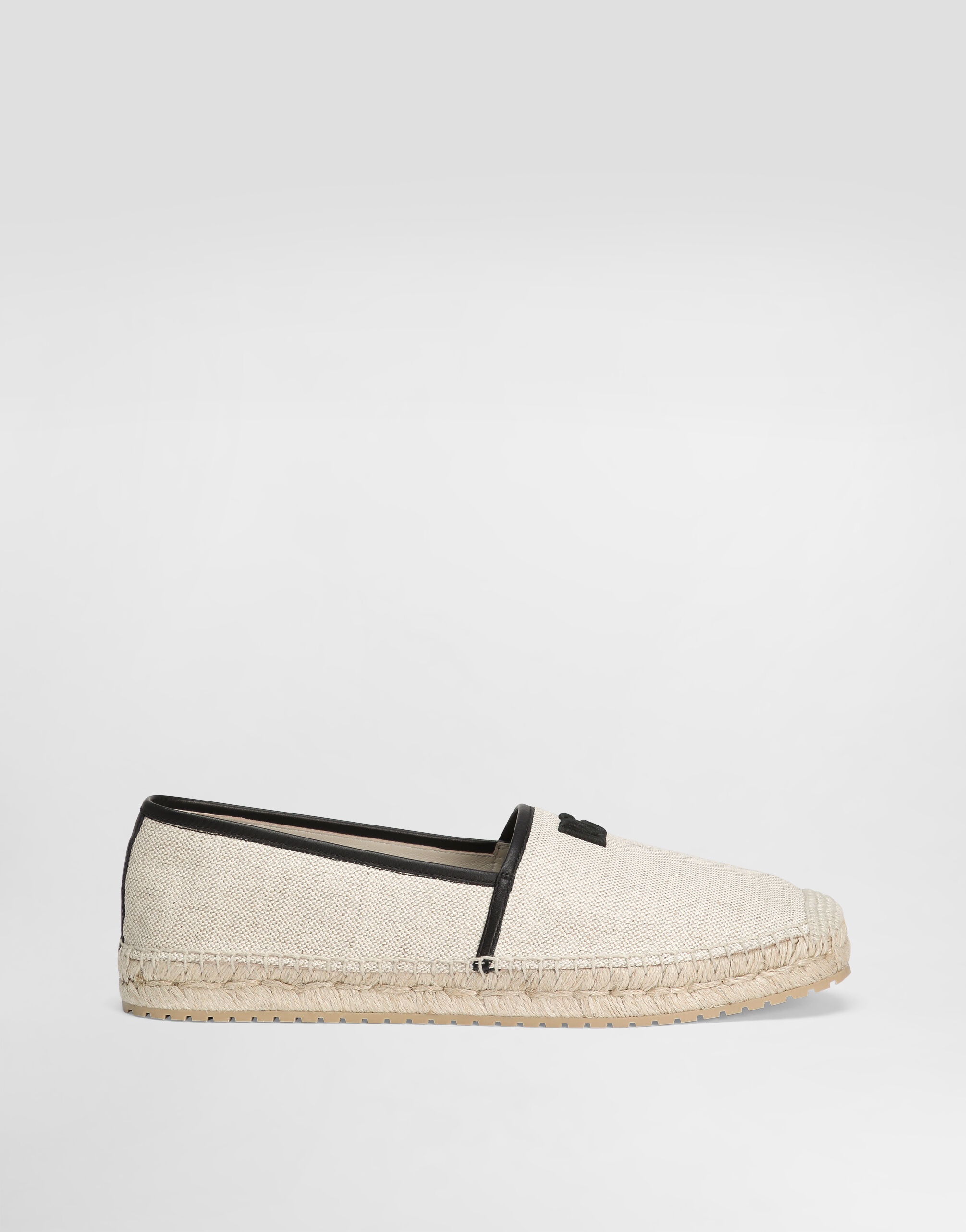 An elegant espadrille that combines classic summer style with modern and sophisticated nappa details. Espadrille in salt & pepper fabric and nappa details: • White • TPU outsole • Rope insole • Leather teardrop heel insole with label • Thread embroidery detail • Item equipped with a black cotton bag and black embossed box • Sole height 25 mm • Made in Italy External Composition: 50% Cotton, 30% Linen, 20% Calfskin