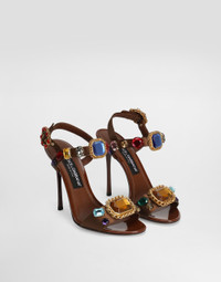 This sandal with a sophisticated design combines the elegance of satin with the shine of patent leather, embellished with embroidered details that add a refined touch to every outfit. Satin and Patent Leather sandals with embellishments: • Multi-colored • Keira 2.0 shape • Leather outsole with DG metal logo • Texon insole • Open toe leather insole customized with label • Gold plating • Heel height 105 mm • Item equipped with black cotton bag and black embossed box • Made in Italy External Composition: 73% Viscose, 27% Silk Internal Composition: 67% Goatskin, 33% Calfskin