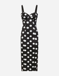 Satin midi dress with polka-dot print and corset details