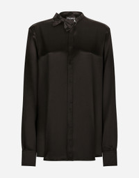 The Holiday collection is an extraordinary story that brings together two worlds: Dolce&Gabbana and the great stars from Hollywood’s Golden Age, who were recognized and admired for their wonderful dresses and extraordinarily glamorous looks. The designers are reinventing and making us dream in front of tailored pieces with breathtaking elegance and visual impact, a sparkling mood that will give everyone a modern, recognizable and unique allure on any occasion. Satin shirt with bow-tie detailing: • Black • Round neck with attached bow tie • Long sleeves • Regular fit • Unlined • Covered placket fastening • The piece measures 80 cm from the center back on a size IT 40 • The model is 175 cm tall and wears a size IT 40 • Made in Italy External composition: 100% Silk