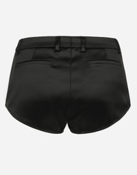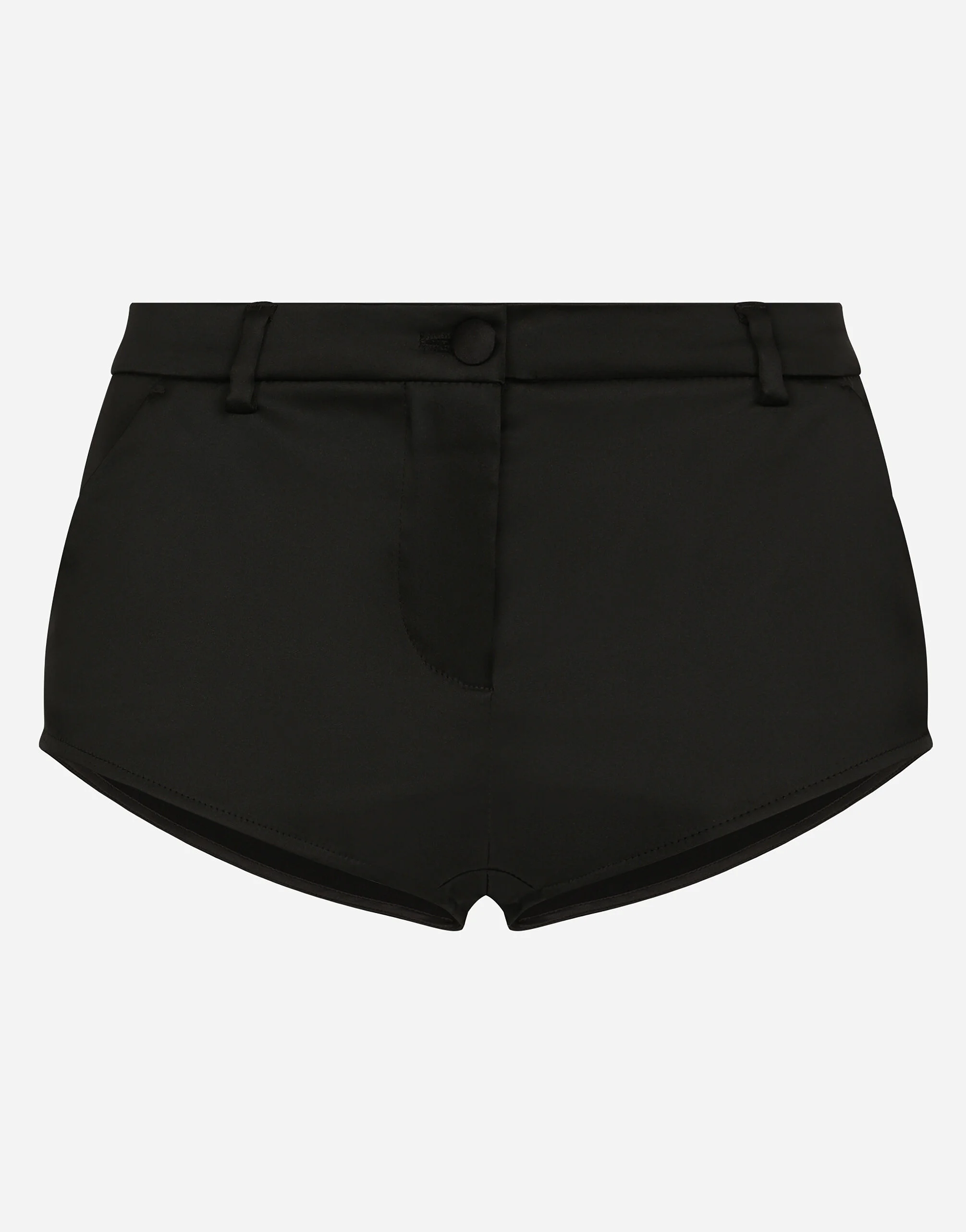 In the “WOMAN SS 24” Collection, the imagery of old Sicily interacts with the masculine, with sensual shapes, lace, nude tones and delicate overlays, to create pieces that move amid clean silhouettes, the elegance of the 1960s, the contrasts of black and white and luxurious textures. The designers are reworking their signature style and their iconic Sicilia black color to convey an aware, seductive and confident Sicilian WOMAN who is imbued with sensuality. Stretch satin shorts: • Black • Regular rise • Zipper and button fastening • The model is 175 cm tall and wears a size IT 40 • Made in Italy External composition: 75% Acetate 22% Polyamide 03% Spandex