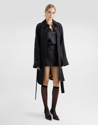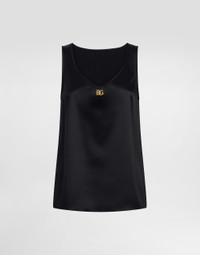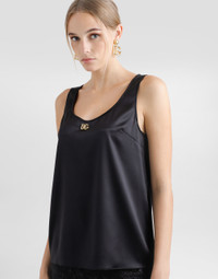 The Women’s DNA Collection is introducing a new side to femininity, which comes in shades of rose quartz, poised between sheerness and opacity, lightness and structure, formality and sensuality. Geometric Dolce Jackets, jacquard pajamas and floral brocade dresses intertwine with ultra-romantic designs. The DG print becomes an iconic statement, while Cordonetto lace and hints of Sicily Black embody the essence of a determined yet romantic femininity. Silk satin tank top with the metal DG logo pin: • Black • Plunging round neck • Sleeveless • Regular fit • The piece measures 57.5 cm from the center back on a size IT 40 • The model is 175 cm tall and wears a size IT 40 • Made in Italy External composition: 93% Silk 07% Spandex