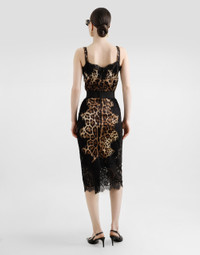 Satin top in leopard print with shoulder straps and lace detail