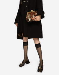 This new Maria clutch bag embodies the brand’s craftsmanship, love and attention to details. Elegant and unique, it comes covered in sequins with the branded fastening on the top and featuring a removable chain. Sequined Maria clutch: • Snap-buckle on the top with DG logo • Satin lining and zipped pocket with branded slider • Item comes with a branded dust bag • Measurements: 17.5 x 27 x 7 cm • Made in Italy External composition: 85% Polyethylene 15% Polyester Internal composition: 68% Viscose 32% Silk