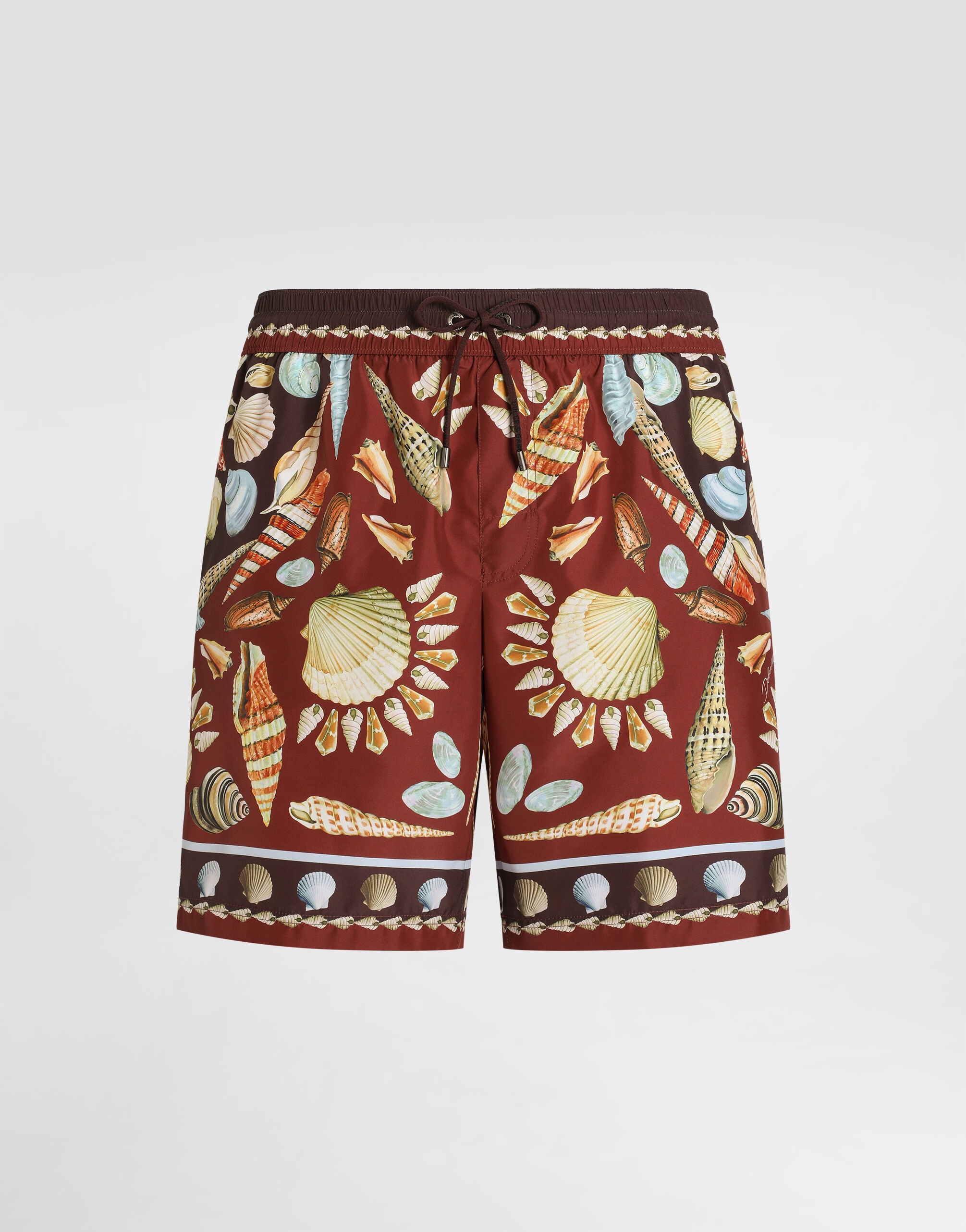 These swim trunks are perfect for those looking for style and comfort during summer days. The addition of the clutch makes this garment a practical and fashionable must-have. Shell-print medium swim boxer shorts: • Multi-coloured • With pocket • Inner briefs • Equipped with a coordinated pouch with zip closure • Made in Italy The difference in the print placement that you may find on this product is a feature of Dolce&Gabbana’s “Handmade” pieces. A detail that makes every garment or accessory unique and exclusive. External Composition: 100% Polyester Internal composition: 12% Elastane, 88% Polyamide