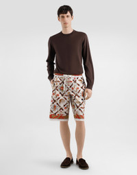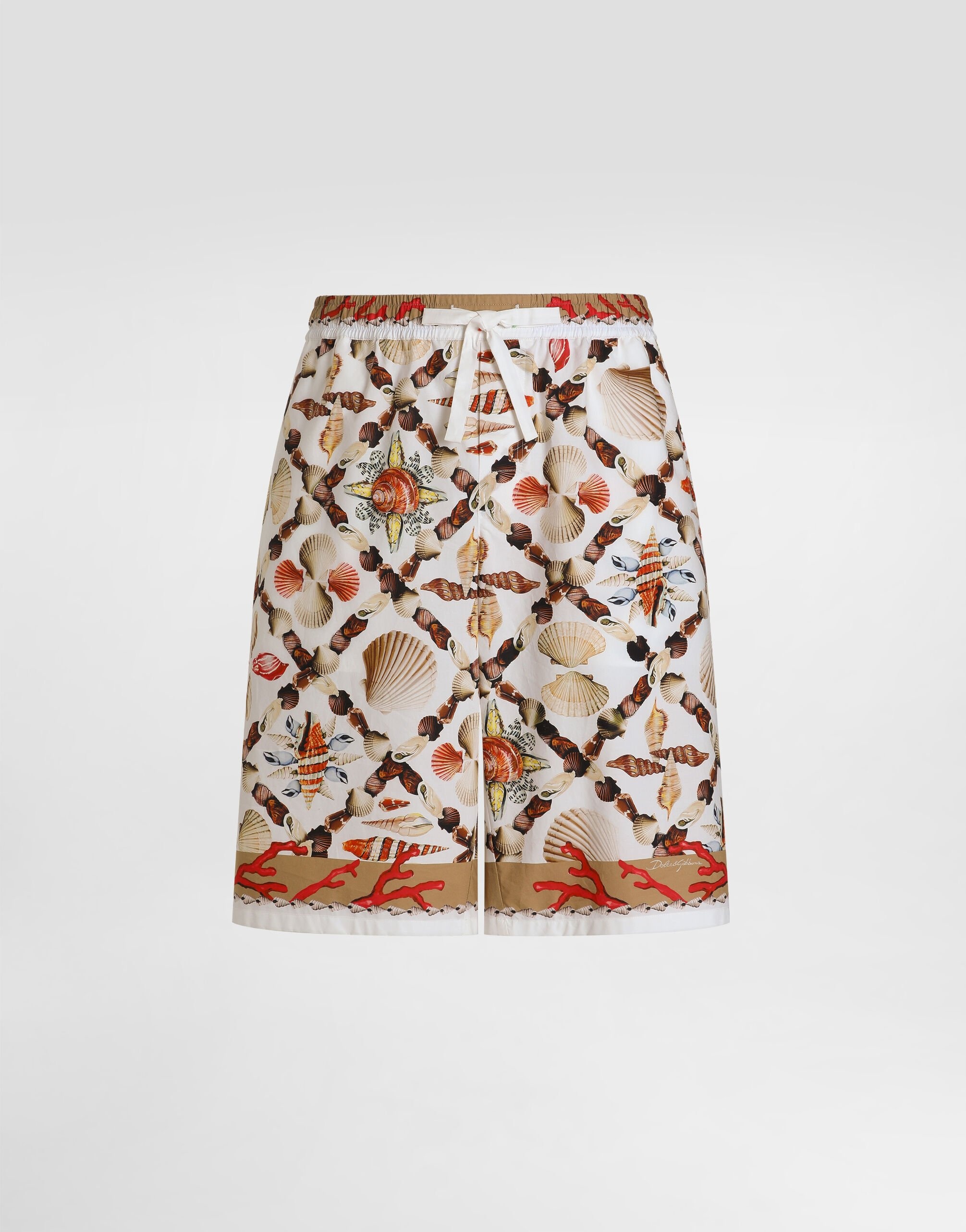 These trousers are a versatile and fashionable piece, perfect for adding a touch of casual elegance to your summer wardrobe. Made of lightweight poplin, it is ideal for warmer days. Shell-print poplin trousers • Multi-coloured • Belt with side slits • Right back pocket • Hip length 32 cm on size 48 IT • The model is 185 cm tall and wears a size 48 IT • Made in Italy The difference in the print placement that you may find on this product is a feature of Dolce&Gabbana’s “Handmade” pieces. A detail that makes every garment or accessory unique and exclusive. External Composition: 100% Cotton