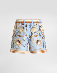 These swim shorts embody the perfect balance of function and style, ideal for any man who wants to stand out elegantly on the beach. Shell-print short swim boxer shorts: • Multi-coloured • With pocket • Inner briefs • Equipped with a coordinated pouch with zip closure • Made in Italy The difference in the print placement that you may find on this product is a feature of Dolce&Gabbana’s “Handmade” pieces. A detail that makes every garment or accessory unique and exclusive. External Composition: 100% Polyester Internal composition: 12% Elastane, 88% Polyamide