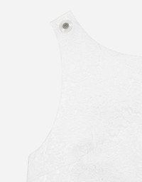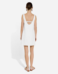 The Italian summers of the 1960s, the candid purity of white, the sophisticated elegance of the jet set of that era. The imagery of the FW24/25 Capri Collection encapsulates all this flawlessly. The pieces range from floaty poplin silhouettes or sack-style dresses and skirts, to brocade outerwear and floral-inlay fabric shirts. The iconic bags – the Logo Bag, the Sicily Bag and the Dolce Box – complement the looks, while the shoes come embroidered with designs inspired by the crystal-clear sea of Capri. Short brocade dress with back neckline: • White • Straight neck on the front and a plunging neckline on the back • Sleeveless • Stretch silk satin lining • Rear zipper and hook-and-eye fastening • The piece measures 55 cm from the waist down on a size IT 40 • The model is 175 cm tall and wears a size IT 40 • Made in Italy External composition: 64% Cotton 36% Viscose Internal composition: 92% Silk 08% Spandex