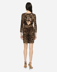 Short charmeuse dress with leopard print and tie