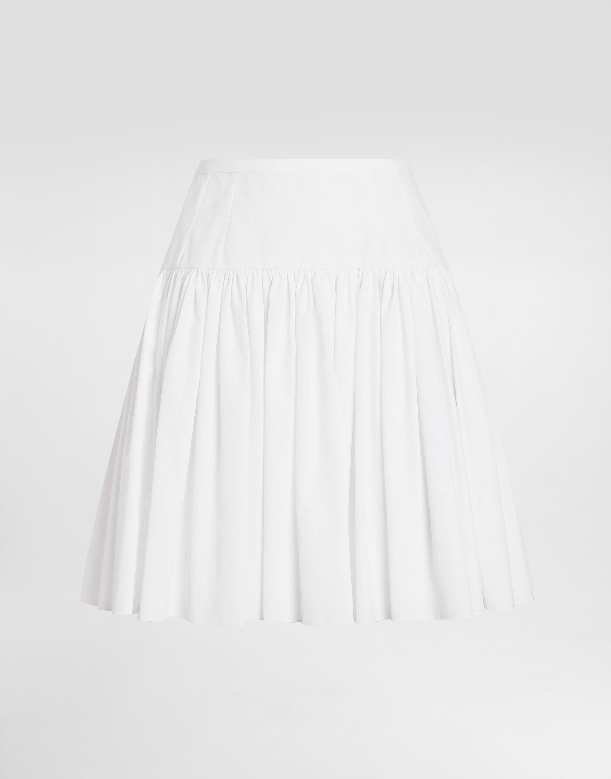 The Spring/Summer 2025 Warm Weather Collection is a vibrant ode to the beauty of the floral world, celebrating the elegance and vitality that lie at the heart of the brand’s DNA. Delicate, colorful bouquets dance across light dresses, skirts, trousers, and beachwear, infusing each piece with a sense of romance and freshness. Coordinated accessories, from scarves to headbands, add charm. An explosion of color and blooms, this collection captures the brand’s unmistakable spirit. Short cotton poplin circle skirt: • White • High-waisted • Lined • Rear zipper and hook-and-bar fastening • The piece measures 46 cm from the waist down on a size IT 40 • The model is 175 cm tall and wears a size IT 40 • Made in Italy External composition: 100% Cotton Internal composition: 100% Cotton