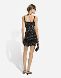 The FW24/25 Mambo Collection is rewriting the rules of Italian elegance, merging the sophisticated style of the 1940s and 1950s with the iconography of American pin-ups. The unmistakable polka-dot motif takes center stage, coming in a variety of shapes and sizes and adorning tulle, charmeuse, twill, silk and poplin, giving life to looks distinguished by black and white accessories and details. An homage to the beauty of Italy and its traditions, the distinctive details of Dolce&Gabbana’s creations. Short draped tulle dress with polka-dot print: • Black • Sweetheart neckline with halterneck tie • Tulle lining • Rear zipper and hook-and-eye fastening • The piece measures 45 cm from the waist down on a size IT 40 • The model is 175 cm tall and wears a size IT 40 • Made in Italy The difference in the print placement that you may find on this product is a feature of Dolce&Gabbana’s “Handmade” pieces. A detail that makes every garment or accessory unique and exclusive. External composition: 92% Polyamide 08% Spandex Internal composition: 82% Polyamide 18% Spandex