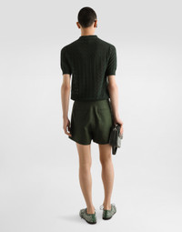 Italy and its beauty are reflected in the Men’s SS25 Collection. Woven raffia and leather give life to jackets, polo-shirts and sweaters to celebrating Italian craftsmanship. The color palette ranges from Nero Sicilia black to burgundy, contributing to conveying a sense of eternal elegance. Refined accessories complement the look: belts and loafers with hand-finished details and oversize bags, such as the Sicily, the Marlene with crocodile-effect print and the versatile Adamo tote. Short-sleeved cotton openwork polo-shirt: • Green • Slim fit • Button fastenings • Short sleeves • Ribbed neck and trims • 12-gauge knit • The piece measures 66 cm from the shoulder seam on a size IT 48 • Made in Italy External composition: 100% Cotton