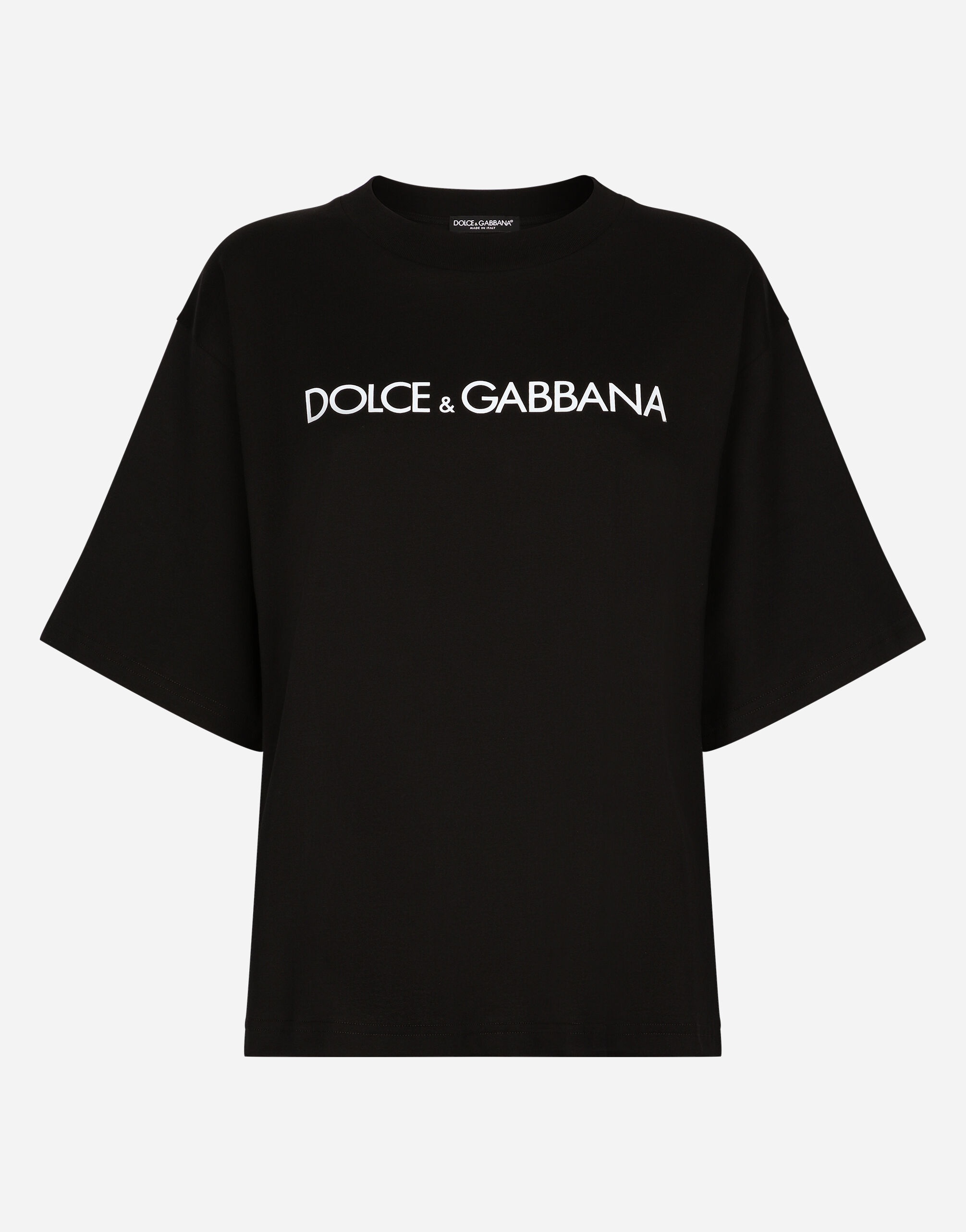 The DG Essential collection is a mix of iconic pieces that flaunt timeless and ageless feminine allure, the distinctive, unmistakable feature of the Dolce&Gabbana woman. Short-sleeved cotton T-shirt with Dolce&Gabbana lettering: • Black • Round neck • Short T sleeves • Boxy fit • The piece measures 63 cm from the rear collar seam on a size IT 40 • The model is 175 cm tall and wears a size IT 40 • Made in Italy External composition: 100% Cotton