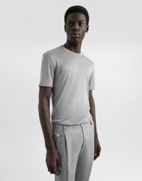 This t-shirt is an essential piece for the modern man, perfect for any occasion thanks to its classic design and the quality of silk. Silk short-sleeved t-shirt: • Grey • Classic fit • Short sleeves • The model is 185 cm tall and wears a size 48 IT • Made in Italy External Composition: 100% Silk