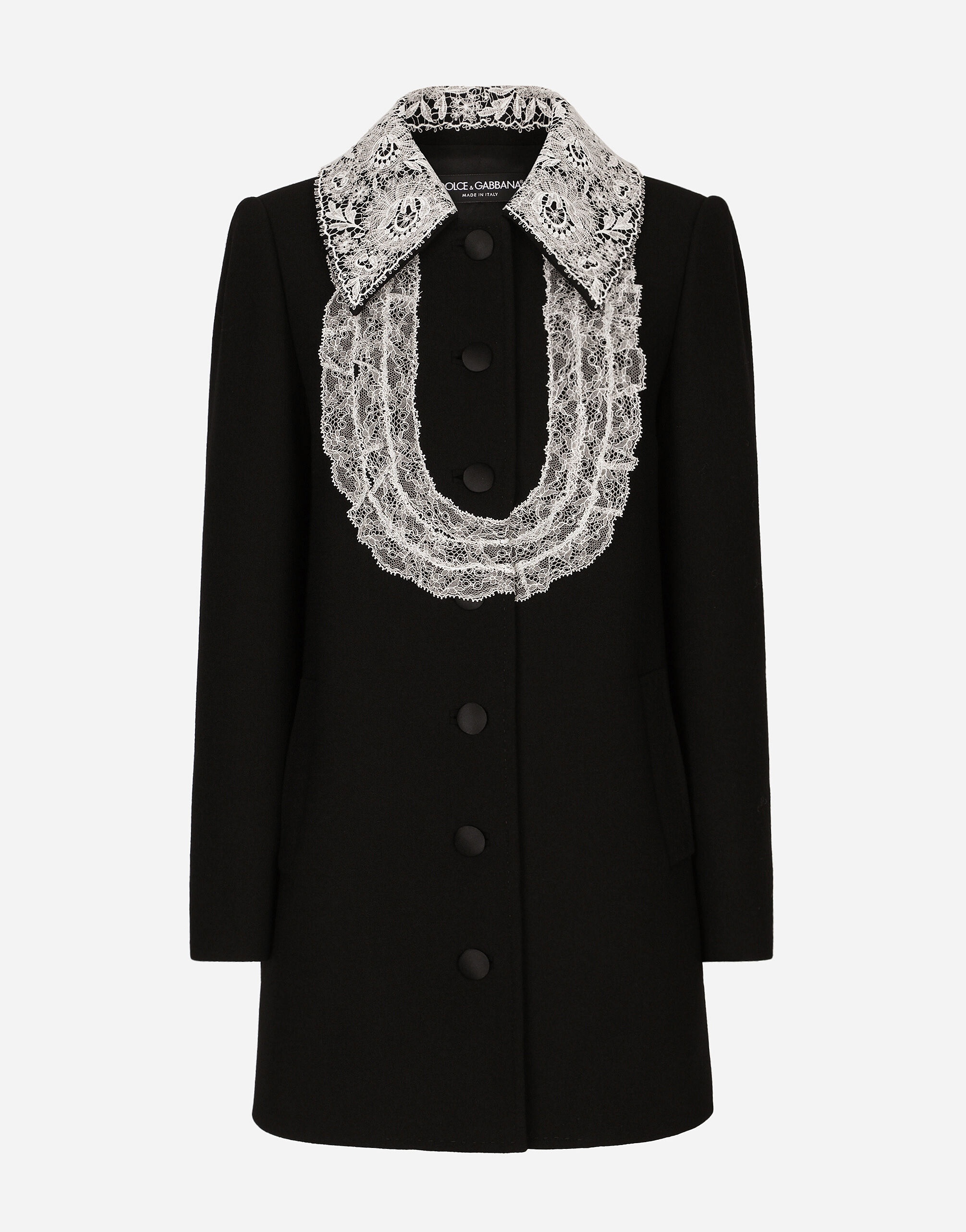 Short wool coat with lace details