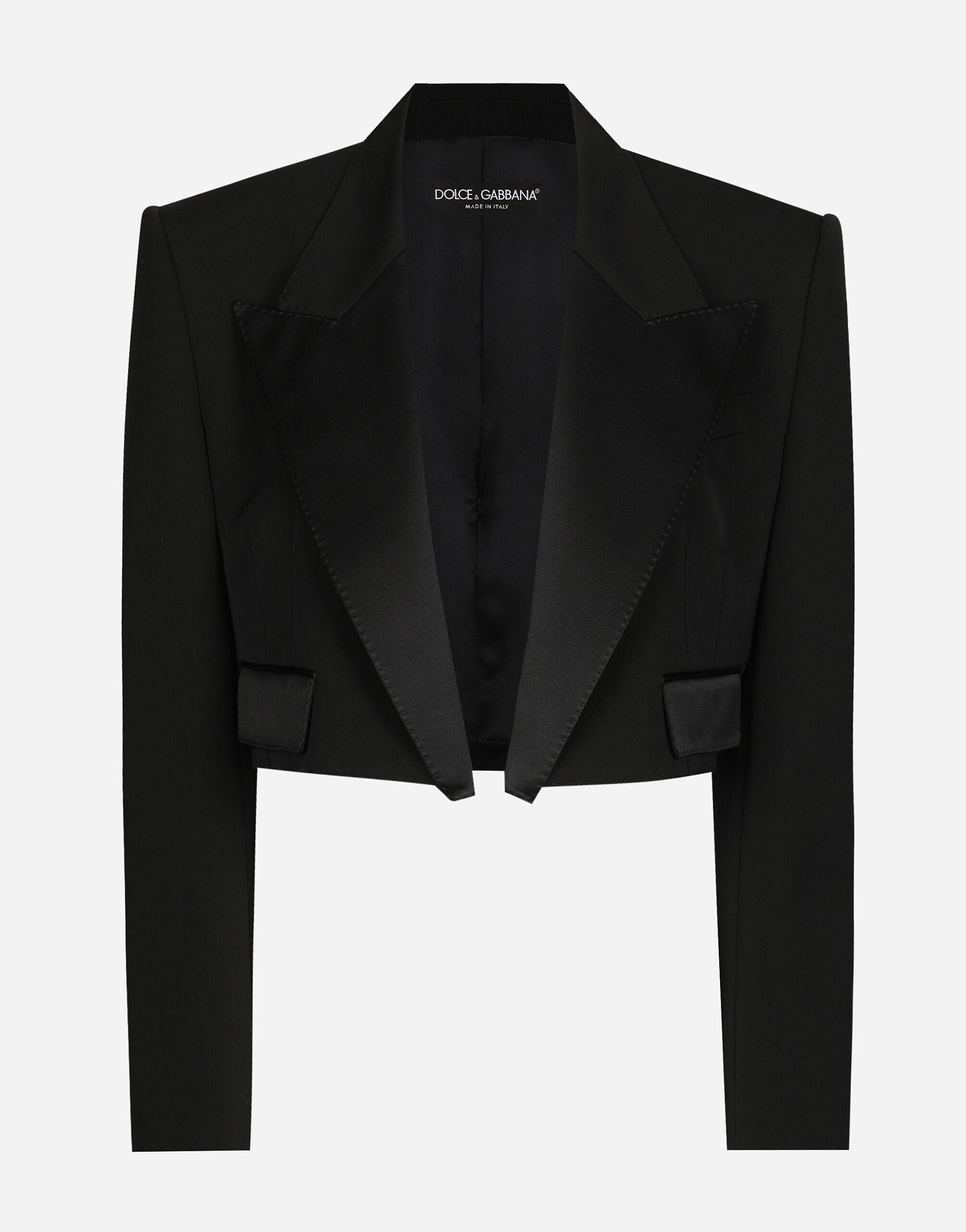 Short wool gabardine tuxedo jacket
