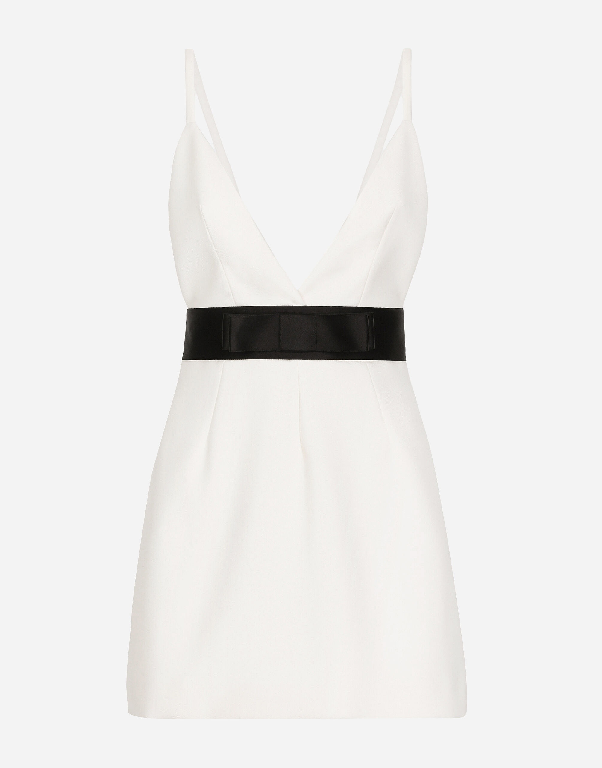 In the “WOMAN SS 24” Collection, the imagery of old Sicily interacts with the masculine, with sensual shapes, lace, nude tones and delicate overlays, to create pieces that move amid clean silhouettes, the elegance of the 1960s, the contrasts of black and white and luxurious textures. The designers are reworking their signature style and their iconic Sicilia black color to convey an aware, seductive and confident Sicilian WOMAN who is imbued with sensuality. Short woolen dress with satin belt and straps: • White • V-neck • Sleeveless with spaghetti straps • Stretch silk satin lining • Rear zipper and hook-and-eye fastening • The piece measures 43 cm from the center back of the neck on a size IT 40 • The model is 175 cm tall and wears a size IT 40 • Made in Italy External composition: 83% Virgin Wool 13% Silk 04% Polyester Internal composition: 92% Silk 08% Spandex