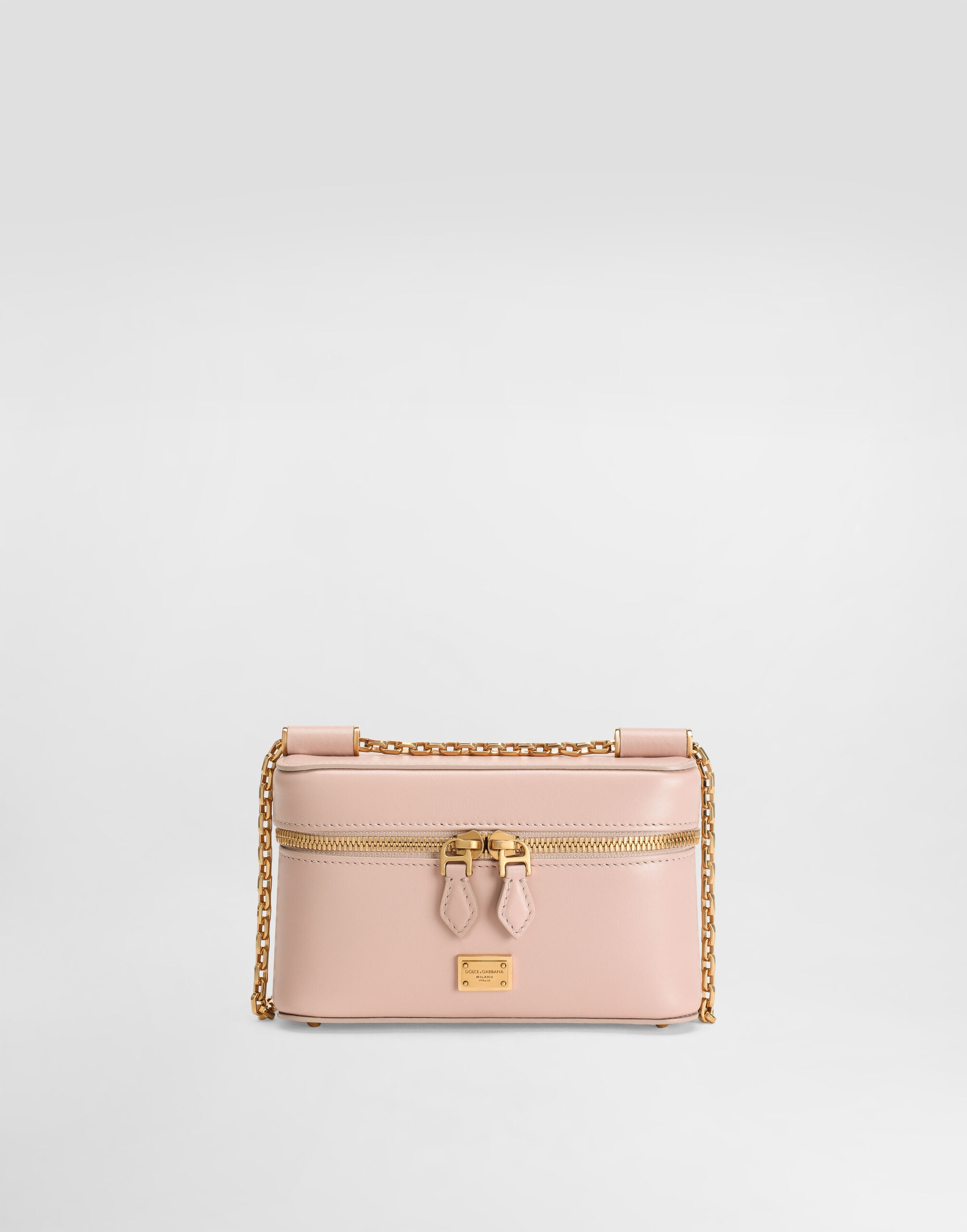 Feminine and versatile, this new Sicily crossbody bag comes in plonge calfskin and features a branded tag with two metal plating finishes. Calfskin plonge Sicily crossbody bag: • Blush • Double-slider zipper fastening • Adjustable chain strap • Nappa leather lining with mirrored logo and elastic storage strap • Item comes with a branded dust bag • Measurements: H10 x W17 x D6 cm • Made in Italy External composition: 100% Calfskin Internal composition: 97% Lambskin 2% Polyester 1% Spandex