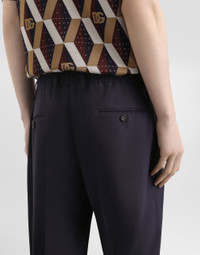 These trousers represent a perfect balance between elegance and comfort, ideal for the modern man looking for a casual yet sophisticated look. Silk and gabardine trousers: • Blue • The model is 185 cm tall and wears a size 48 IT • Made in Italy External Composition: 65% Cotton, 35% Silk