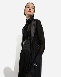 Stretch silk chiffon wide-leg pants: • Black • Dolce high waist • Double darts • Front slant pockets • Belt loops • Inner leg: 90 cm • Hem: 48 cm • Detachable inner stretch silk crepe de chine shorts • Concealed front zipper and covered button fastening • The model is 175 cm tall and wears a size IT 40 • Made in Italy Care And Details External composition: 93% Silk 7% Spandex Internal composition: 91% Silk 9% Spandex