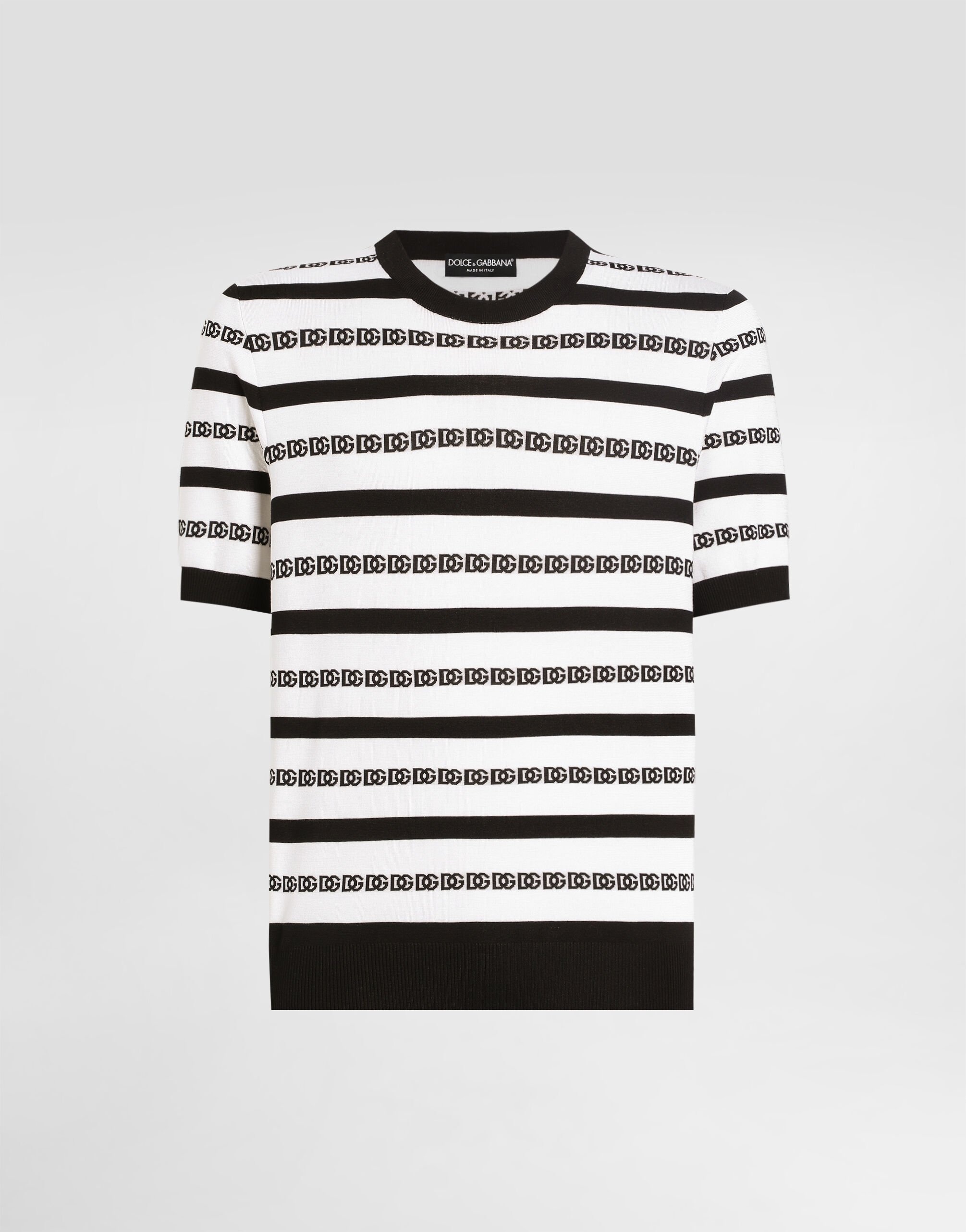 This short-sleeved crew-neck pullover is the perfect combination of style and comfort. A versatile garment for any occasion. Silk crewneck pullover with logo: • Multi-coloured • Crew neck • Short sleeves • The model is 185 cm tall and wears a size 48 IT • Made in Italy External Composition: 100% Silk