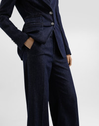 Cotton denim and silk palazzo pants: • Blue • High-waisted • Slant pockets • Pressed pleat • Belt loops • Inner leg: 89 cm • Hem: 32 cm • Zipper and branded metal button fastening • The model is 175 cm tall and wears a size IT 40 • Made in Italy External composition: 43% Cellulose Fiber 28% Cotton 22% Modal 5% Silk 2% Spandex
