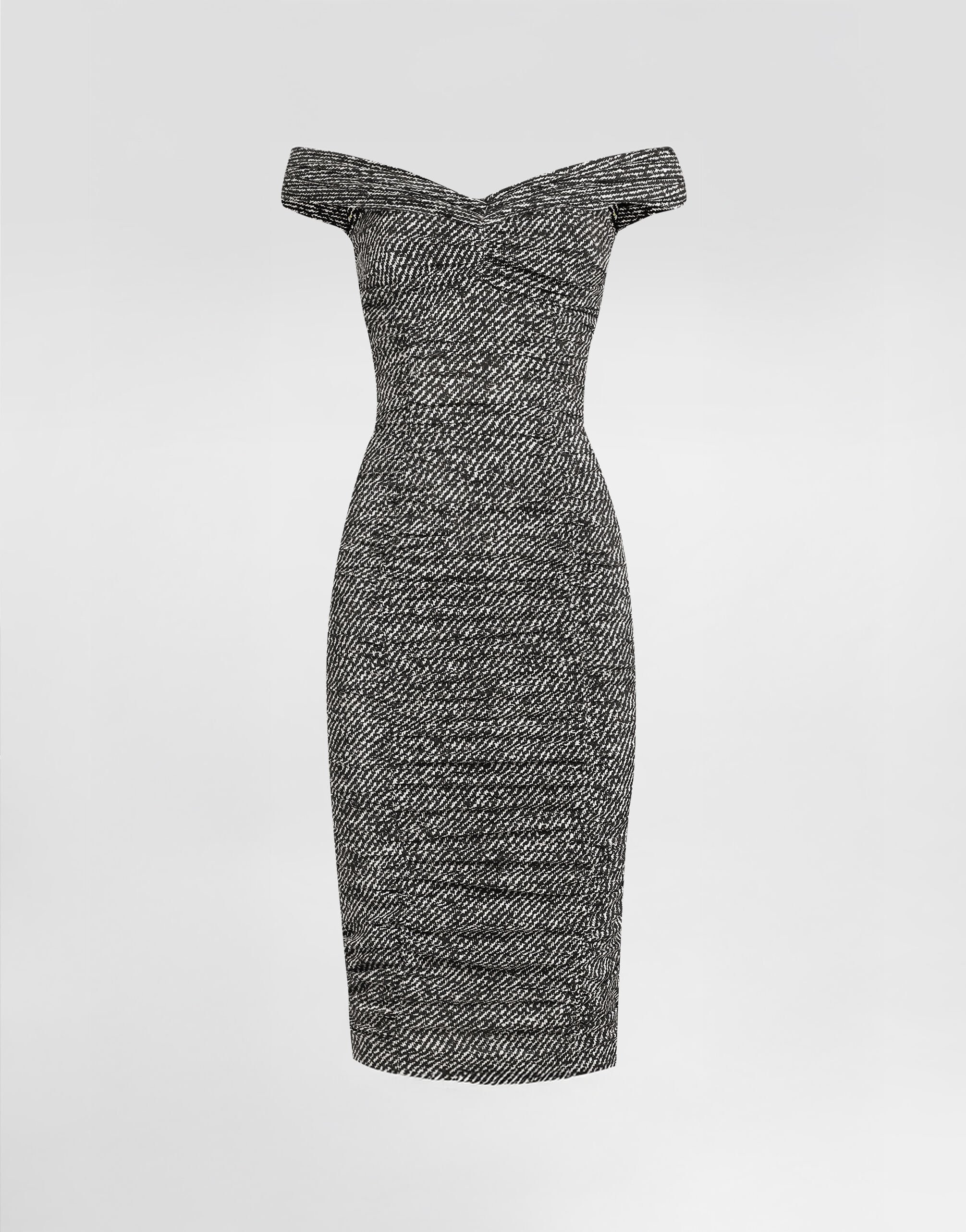 This fitted dress is the perfect choice for a sophisticated and modern look. Thanks to its diagonal print and elegant drape, it is ideal for evening events and special occasions. Fitted silk dress with diagonal print: • Multi-colored • Neckline with band • Underbust cut, skirt with side cuts • Draping • Sleeveless • Back zip • Lined • Length 75 cm from the waist on size 40 IT • The model is 175 cm tall and wears size 40 IT • Made in Italy External Composition: 92% Silk, 8% Elastane
