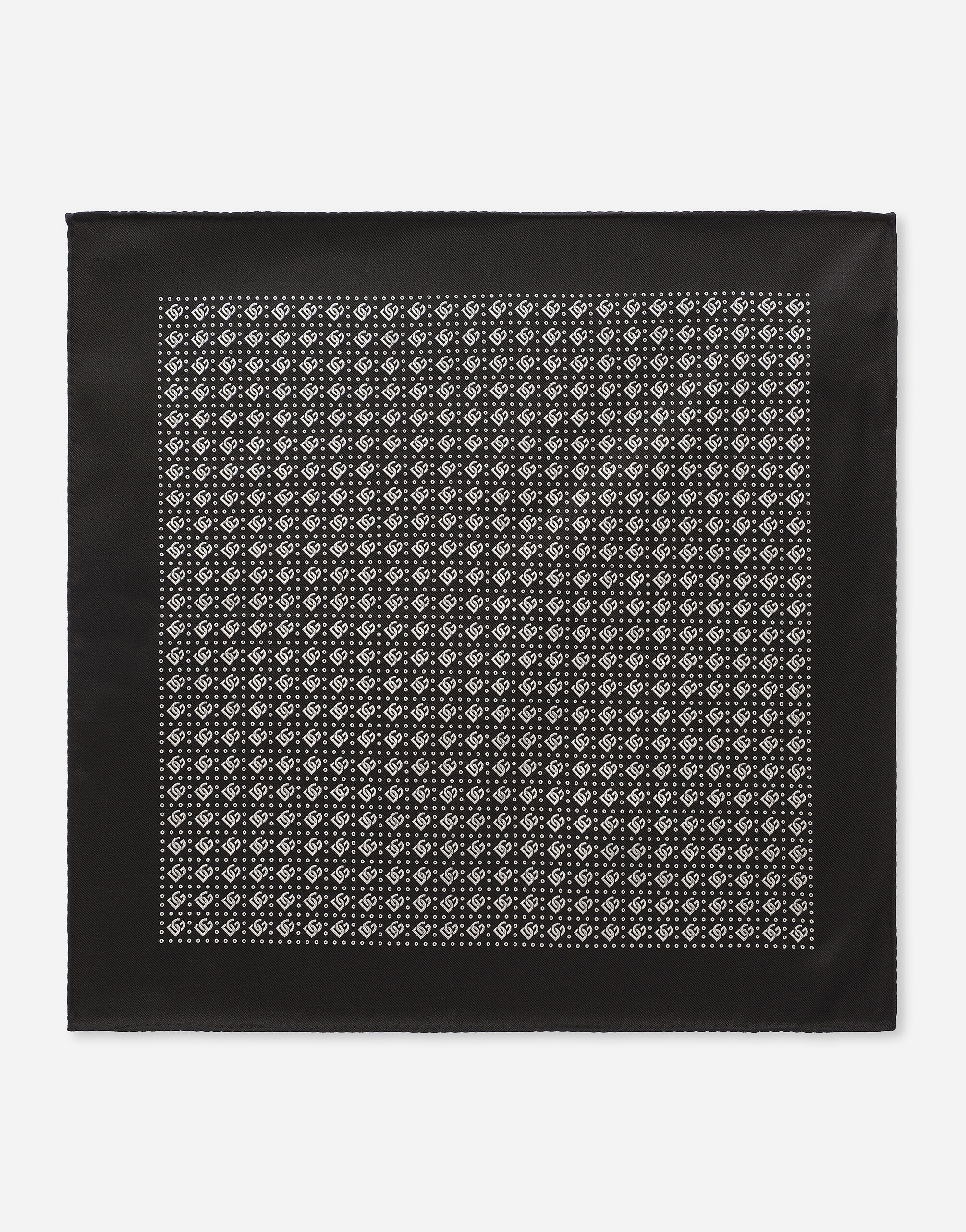 Tailoring, an art form made of skill, harmony and heritage, is part of the Dolce&Gabbana world that the designers love to update and reinterpret every season. Devotees of Italian craftsmanship and exclusive sartorial heritage, in this collection the designers are presenting a new freedom to wear seemingly formal garments, a new concept of experiencing tailoring that balances urban elegance and comfort, creating a youthful, sophisticated, relaxed and profoundly updated style. Silk twill jacquard pocket square with DG logo: • Black • Logo print • Measurements: 33x33 • Made in Italy External composition: 100% Silk